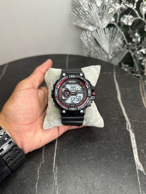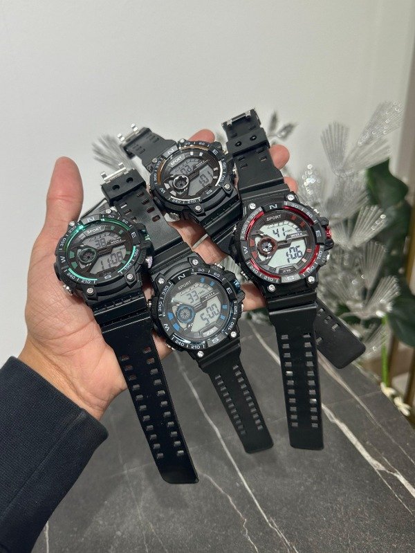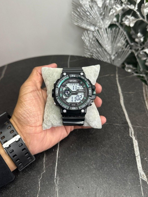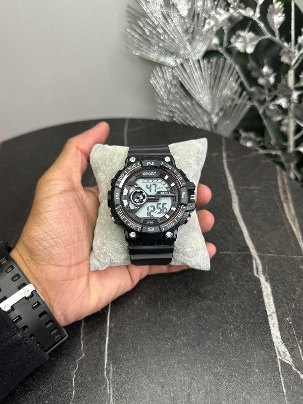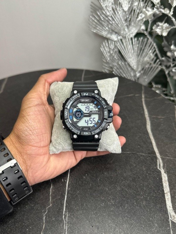 Cuenta con hora, fecha, luz led y cronómetro.